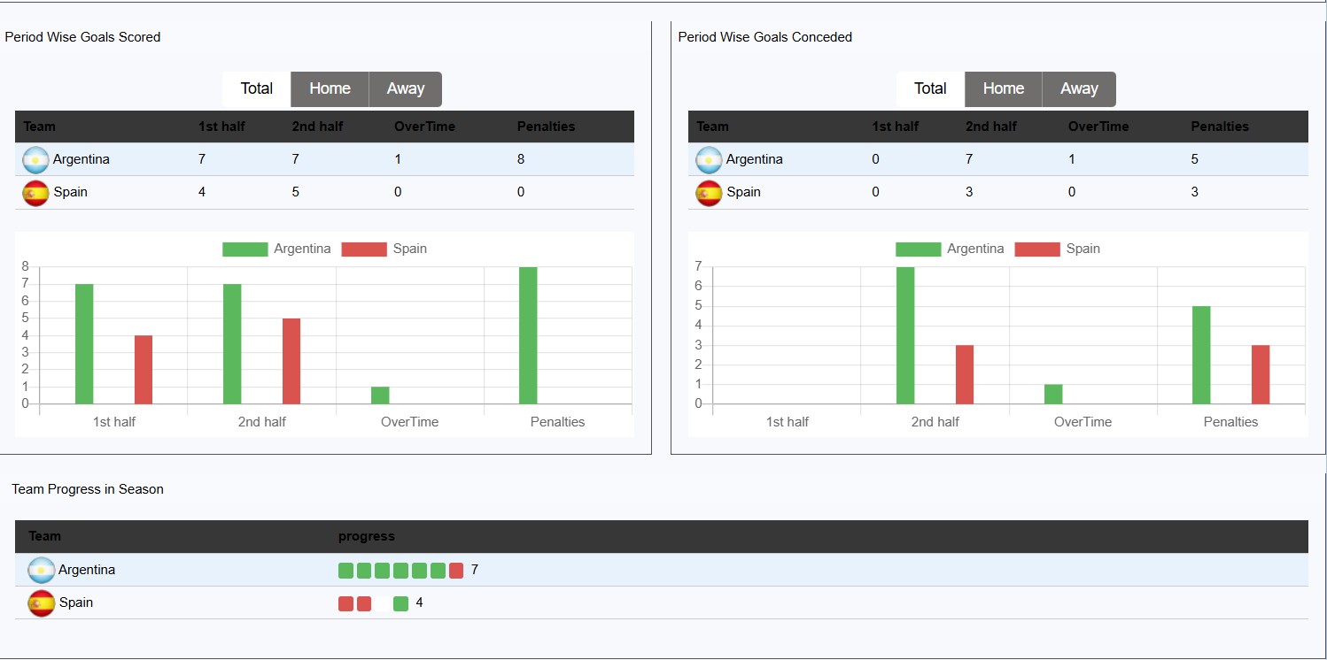 - Game-by-Game details: Click on specific games or matches to view detailed scores, highlights, Team lineups, Match stats. and even commentary to enrich the user’s experience.